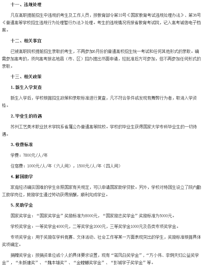 苏州工艺美术职业技术学院2023年高职提前招生简章
